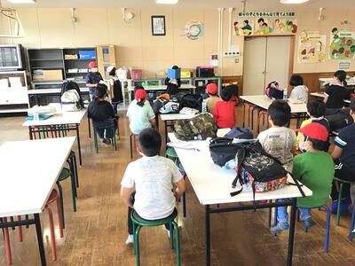 何やら楽しそう、笑顔いっぱいです。この姿勢、視線の先に注目している様子でクラスのまとまりがわかります。