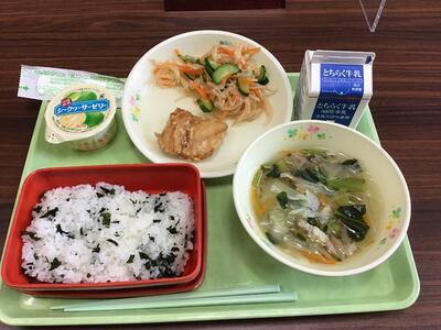 給食あるあるなのですが、冷やし系の麺料理や、冷凍みかんなどを提供する日は、狙ったわけではなく涼しい日が多いのです。しかし、今年は早々に梅雨が明けたおかげ(?)で、冷やし中華をより一層おいしく食べられたのではないかと思います。