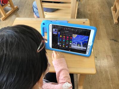 4年生は、国語「漢字の組み立て」についての学習です。さすが、タブレット使いが巧みです。ノートの提示や比較をモニター上でしながらテンポよく進んでいます。
