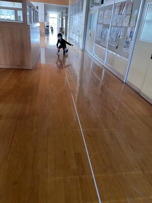 学校周りの道路は、歩道がなく車の往来も多く、危険がいっぱいです。正しい交通マナーを習慣にして、安全な生活を送れるよう指導していきます。
