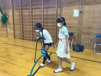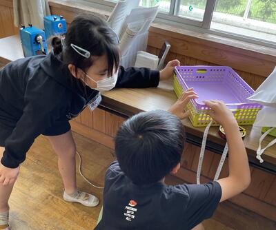 昇降口で集めているペットボトルキャップを、代表委員会の児童が回収していました。昇降口は2カ所あるので、ぐるっと回って下学年の昇降口にも行きます。