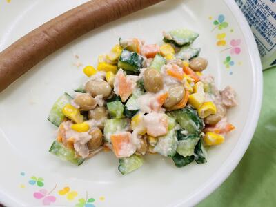 そうです!!今日の給食のサラダは、そこで紹介した「カリコリサラダ」なのです。