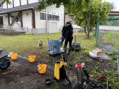 清掃活動中です。木曜日は昼休みではなく、清掃です。