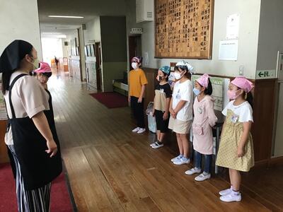 朝から気温が高く、登校するだけても子どもたちは汗びっしょりです。
