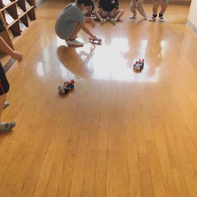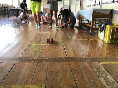 4年生たちが、理科で作った電動自動車を走らせていました。