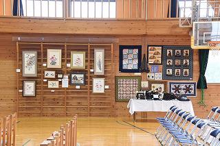 体育館壁面には、子どもたちの短歌や俳句の作品の他、地域の各種団体のみなさんが制作した作品等が掲示され、休憩時間に見ることができました。ありがとうございました。
