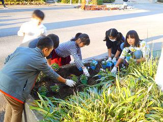 元津田小PTA会員からなる平成の会様から、パンジーをいただきました。飼育園芸委員会の子供たちが、彩や好みに応じて苗を選びながら手際よく花壇やプランターに移植しました。そして、子どもたちにも一苗ずつプレゼントさせていただきました。ありがとうございました。