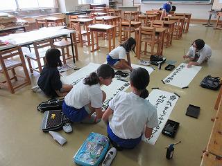 運動会前日まで業間の時間が長くなる特別日課なので、早速各係ごとに練習が入っています。北校舎3階では、応援団が応援歌の練習をしていました。赤組は嵐の「ハピネス」、白組は嶋大輔の「男の勲章」を替え歌にして、低学年に指導するために力一杯練習していました。1階の職員室にも、大きな応援歌がこだましてきて、学校全体で気分が盛り上がってきています。