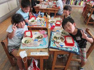 今夏になって2度目の全室エアコン運転日になりました。快適な中でのおいしい給食とは、しばらくの間お別れです。夏休み中、冷たい物や好きな物ばかり食べていると、熱中症や夏バテになりやすいので、注意してほしいですね。