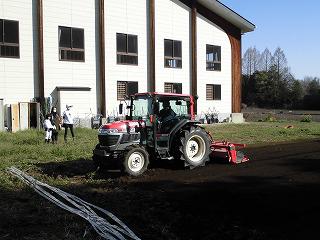 4月6日(土)PTA事業部の方と小林聡様による、畑耕しが行われました。体育館南側の畑を、これからの授業で使うためです。大きな石を取り除いた後、トラクターであっという間に掘り起こされ、眠っていた土が目を覚ましたかのようです。この後は、学年分担の仕切りロープを張って終了となりました。今週中には、6年生が理科の授業でジャガイモを植える予定です。ありがとうございました。