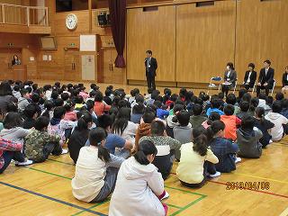 春休みが終わり、平成31年度の新学期は新任式からスタートです。新1年生がいないので、広い体育館がより広く感じられましたが、子どもたちは5人の先生方と初めて顔を合わせしました。