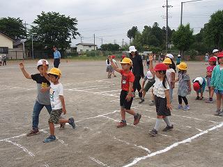 5時間目に交通安全教室を行いました。登校班ごとに整列し、道路の横断の仕方を確認します。