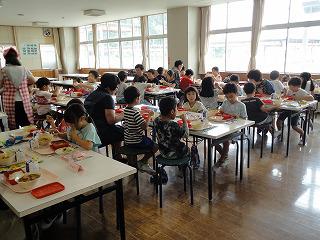 本校の給食の様子を共同調理場の場長さん、栄養士さんが参観に見えました。みんなしっかり給食を食べて、お話ししながら楽しいひとときを過ごしました。