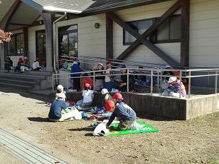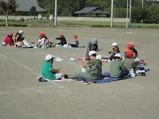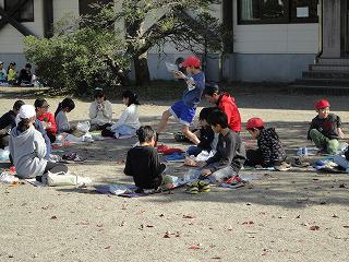 なかなか食事できない校庭の真ん中もいいものです。6年生が下級生の面倒をよく見てシートを敷いてくれたり、ごみの処理をしてくれたりしていました。