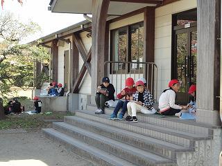 天気に恵まれ野外給食が行われました。仲よし班で場所を決めて楽しいお話をしながら食事をするのはとても気持ちがいいです。風が強くて袋が飛ばされることもありましたが、決して食べ物は飛ばされることはありませんでした。