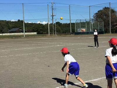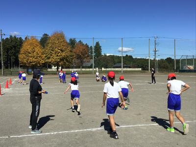 今日は、体力向上エキスパートティーチャーが、来校され、4年生、5年生に「投げる運動の」指導をしてくださいました。