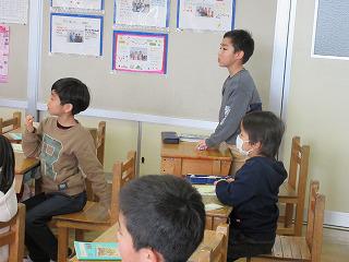 主語と述語の学習を進めていました。先生が子どもたちにジャンプさせたり黒板に字を書かせたりして、何が主語で、どんなことをしたが述語であることを楽しく学習していました。