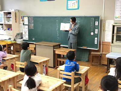など、絵本を中心の読み聞かせです。環境問題を扱った本、人生の奥深さを感じさせる本、楽しくて思わず声が出てしまう本など、様々なお話を選んでくださるので、子どもたちも担任も楽しみにしています。保護者、地域の皆様にもおなじみのタイトルがあったのではないでしょうか。