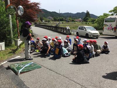 2年生が生活科の学習で、町探検へ行きました。3チームに分かれそれぞれの見学地へ元気に出発です。