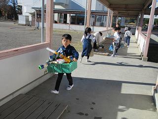「おもちゃ大会」に、1年生と津田保育園の年長児さんを招待して、各グループで考えたおもちゃで遊んでもらいました。一つ一つが市販のおもちゃにはない手作り感満載の心のこもった作品です。見ているだけでそれが伝わってきます。主催者?である2年生は、その準備から進行やコーナーの運営を行い満足顔でした。1年生は、年長児さんたちにバックを作ってあげたり、一緒に各コーナーを回ったりました。