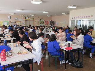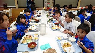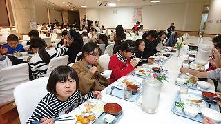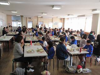 また、交流給食も始まりました。今日と明日は、3・4年生が食堂に集まって会食になります。