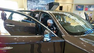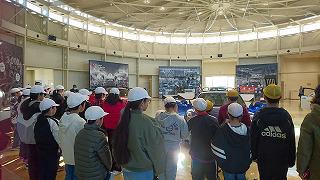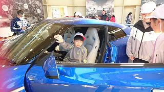 上三川日産工場に着きました。ディズニーランドの6倍の敷地面積の広大な工場で、GTRやフェアレディZなどのスポーツタイプと、シーマやフーガなどの高級車を生産しています。大ホールでの説明のあと、担当のガイドの方がついて、工場の中も見せてもらいました。教室で学習してきたことを自分の目で確かめます。展示車には乗り込むこともできます。