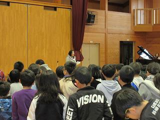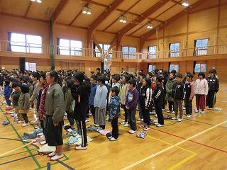 体育館はかなり冷え込んでいました。夏休みから最近までの各種コンクールや大会等での表彰の後、全校合唱をしました。人権週間の最後なのでビリーブを全員で歌い、心が温まりました。