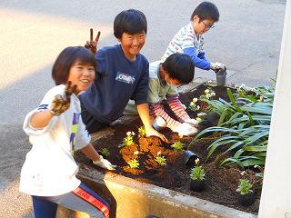 元津田小PTA会員からなる平成の会様から、パンジーをいただきました。飼育園芸委員会の子供たちが、彩や好みに応じて苗を選びながら手際よく花壇やプランターに移植しました。そして、子どもたちにも一苗ずつプレゼントさせていただきました。ありがとうございました。