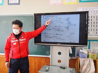 1時間目、5年生の算数では百分率の学習です。プリントの練習問題を解き、一人の子の解答をタブレットでモニターに映し、全員で答え合わせをしていきました。今までの実物投影機と違って鮮明な画像を即時に映すことができ、大きさも自在に変えられます。