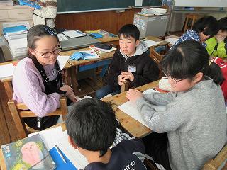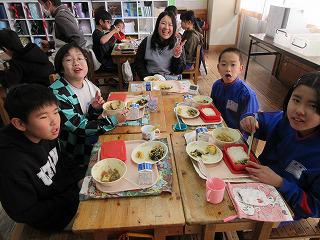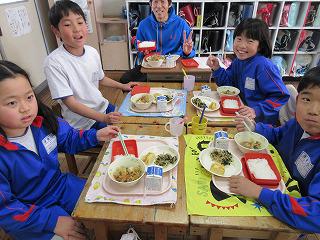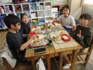「ごはん、牛乳、厚焼き卵、おかかあえ、すき焼き風煮」です。今日は、4年1組に宇都宮大学教職員大学院の方が1名いらっしゃっています。休み時間に一緒に縄跳びをしたり、授業で支援していただいたりしました。