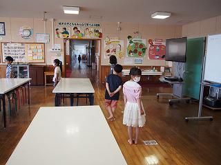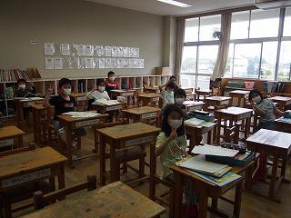 友達との距離をとること、こまめな手洗いは今後も継続して指導します。蒸し暑い季節になりますがマスクの着用をお願いいたします。(文部科学省から児童一人ひとりに布マスクが届いていますので、最初の登校日に配ります。)