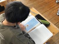 出張でいない日です。そっとのぞいてみると書写の授業中でした。
