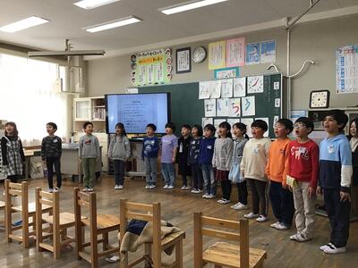 1年生は、「もうすぐ2年生」と題して、入学してからの自分や友達の成長を振り返り発表しました。