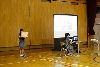児童会委員会集会です。各委員会の活動内容等について全校生に理解してもらうために、各委員会の代表としてパワーポイントにまとめたものを発表しました。