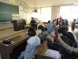 関口先生が「国歌」「市歌」を歌ってくれました。みんな感動して聞き入っていました。大きな拍手が起こりました。