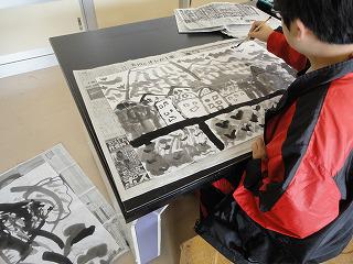 例年藤澤先生にお世話になり本校の3年生は水墨画を学んでいます。2時間ですが濃淡をはっきり付けたすばらしい作品を仕上げました。