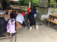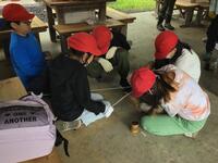 カレー作りの前に「火起こし」体験。グループのみんなで力を合わせて頑張りました。