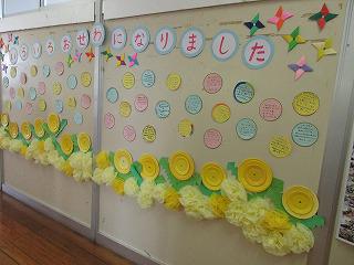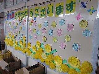 6年生教室前の廊下には、在校生のみんなからこれまでの感謝の気持ちをしたためた心温まるカードが、係の先生のアイディアで素敵なメッセージとして掲示されていました。6年生は、もう読みましたか。