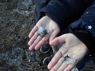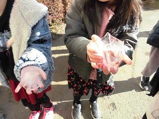 「ふゆとともだち」で氷をつくりました。1月の単元ですが、寒い日がなかったので、2月になってから実施しました。霜柱も体験し、寒い中でも笑顔がいっぱいでした。