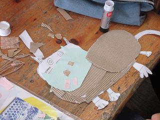 「でこぼこもようのなかまたち」で、包み紙や和紙などの凹凸を使って昆虫や動物を表現していました。