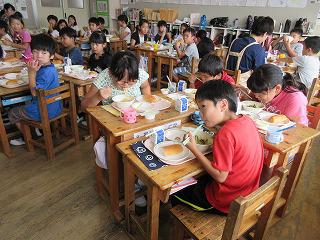 今夏になって2度目の全室エアコン運転日になりました。快適な中でのおいしい給食とは、しばらくの間お別れです。夏休み中、冷たい物や好きな物ばかり食べていると、熱中症や夏バテになりやすいので、注意してほしいですね。