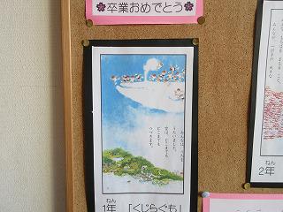 いつもであれば、地域のボランティア団体の一つであるKLV(カリブー)の方たちが、卒業する6年生のために、6年間使った国語の教科書の中から、思い出の教材を朗読してくださっていました。今回は、臨時休業になってしまったので、残念ながら中止でした。図書室に行ってみると、その代わりに掲示がありました。