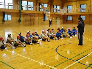 6年生の様子です。 4年生が礼の仕方を示しています。