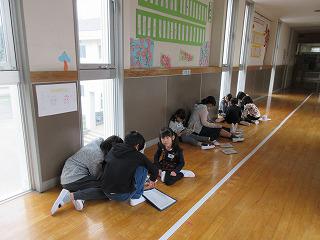 1・2組合同で、近くにある特別養護老人ホーム「さつき荘」訪問の打ち合わせをしました。グループに分かれて、どんなことをすれば入所している方に喜んでいただけるか話し合いました。