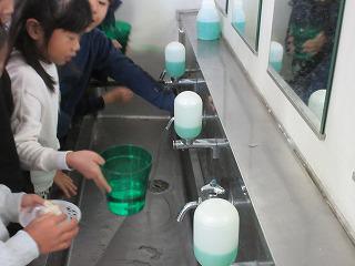 「おおきくなあれ」で球根の水栽培の準備をしていました。グループごとに、水の量に気をつけながらヒヤシンスの球根をセットしていました。1年生は、これから伸びる根の変化に釘付けになるでしょう。