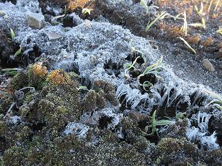 今朝の冷え込みは厳しかったですね。通学路の武子川にはわずかですが川霧が、そして畑には霜柱が・・。