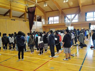 「友だちはいいもんだ」を全校生で歌いました。寒い体育館でしたが寒さを吹き飛ばす元気な歌声と友だちを思いやる歌詞の内容に心を打たれました。