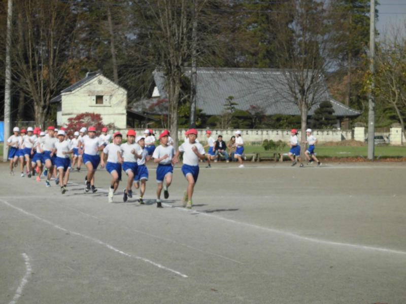 12月2日(金)晴天の下、持久走記録会が行われました。当日は多くの保護者やご家族・地域の方が応援に集まっていただきました。子どもたちも朝から緊張気味でしたが、日頃の練習の成果を発揮し、記録を更新しようと頑張って走っていました。1年生は初めての記録会に張り切っていました。また、6年生は最後の記録会に今までの自己記録を少しでも更新しようと意気込んでいました。どの学年の子どもたちも応援の声に後押しされて、真剣に走っていました。校長は全学年の子どもたちと一緒に走り、一番声援を受けていました。
