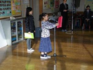 代表児童の発表(5年生) 児童会からのお知らせ(4年生)