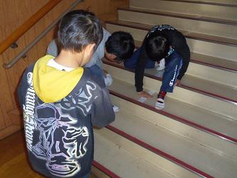 4年生が総合的な学習の時間に学校のために自分たちができることを探して取り組んでいます。各自が考えた内容をそれぞれのグループに分かれて行っています。体育器具庫のボールに空気を入れている子。中庭を一生懸命に掃いている子。駐車場の看板を作っている子。階段のセンターラインを張り直している子など各自が学校をきれいにしようと一生懸命取り組んでいます。来年は高学年として、学校を引っ張っていくことになる4年生が、その準備としていろいろな活動に取り組んでいます。まだ数時間活動が残っているようです。4年生のみなさん、ありがとうございます。